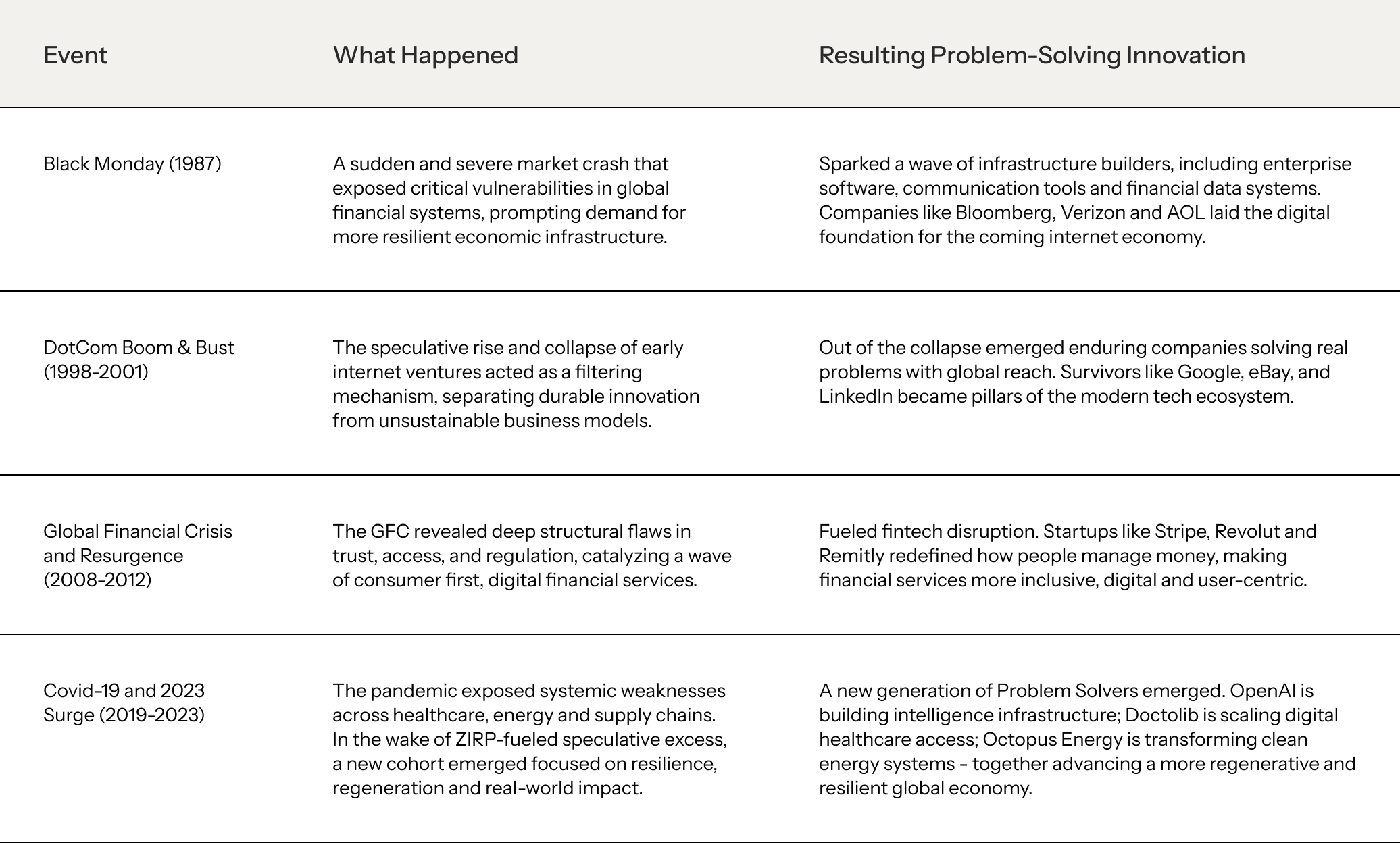 For investors, the clearest path to resilience and long-term value lies in backing companies that solve early: turning pain points into essential infrastructure, and systemic risk into scalable, enduring returns.